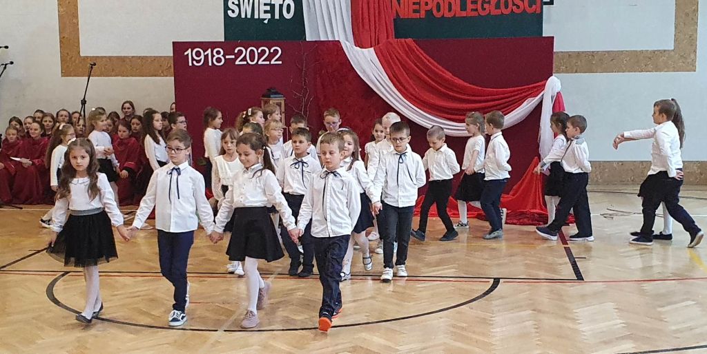 Na koniec akademię uświetnili uczniowie klas pierwszych tańcząc poloneza. Uczniów przygotowywały p. Marta Szczepek, p. Renata Piegdoń i p. Anna Szczepek. Akademię prowadził Dawid Gerlach. Występujący w uroczystości wykazali się bardzo dużym zaangażowaniem i kunsztem aktorskim. Dekorację wykonała p. Agnieszka Mrozek.