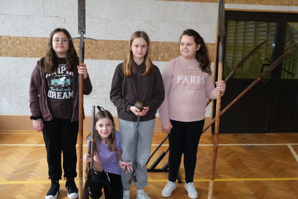 W czasie barwnej opowieści historycznej panowie prezentowali broń charakterystyczną dla poszczególnych zrywów narodowowyzwoleńczych oraz stroje noszone przez kosynierów uczestniczących w powstaniu kościuszkowskim. Uczniowie mogli nie tylko obejrzeć różne rodzaje broni z odległych czasów, ale również dotknąć i zaczerpnąć informacji o jej wykorzystaniu na polu walki.