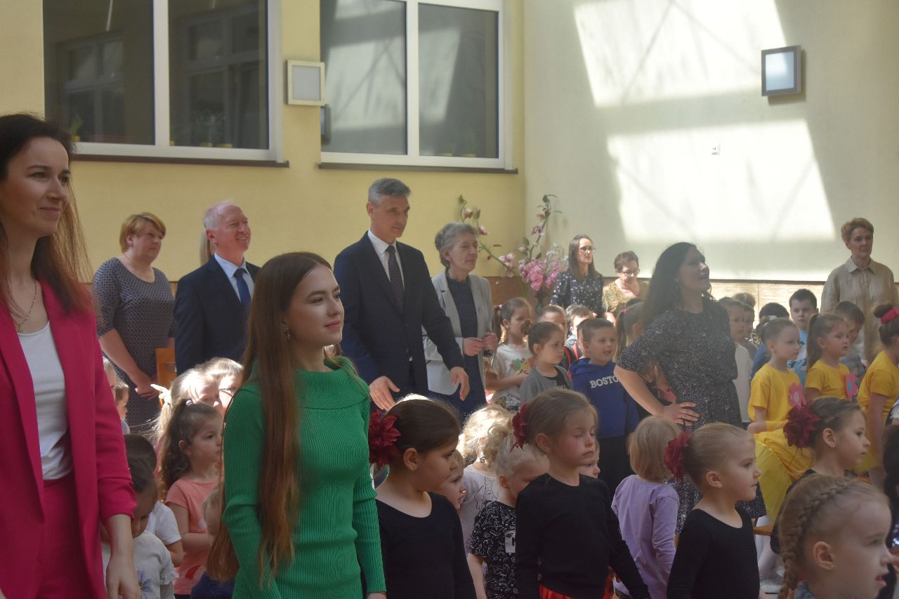Po tych występach wszyscy zebrani w atrium zostali zaproszeni do zabawy przy piosence „Małe wygibasy”, a układy ruchowe do niej podpowiadały dziewczynki z grupy „Pszczółki”.