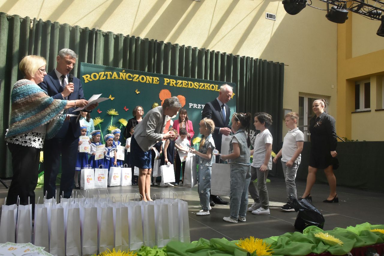 Na zakończenie spotkania dyrektor p. Wiesław Pałka, wicedyrektor p. Marta Szczepek, oraz gości p. Mariola Pilszak i p. Józef Baran wręczyli wszystkim uczestnikom konkursu pamiątkowe dyplomy i nagrody. Podziękowania otrzymali również opiekunowie dzieci, a dyrektorzy przedszkoli i zaproszeni goście.