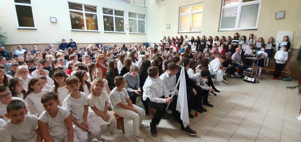 Nie byłoby ducha świąt bez kolęd i kolędowania. Stroną muzyczną zajmował się p. Mieczysław Dąbrowski oraz p. Daniel Dyka wraz ze szkolnym chórem. Radosne dźwięki muzyki niewątpliwie budowały atmosferę radości, jedności oraz pobudzały serca do wdzięczności, za wszystko, a zwłaszcza za dar zbawienia, jakie wysłużył nam Jezus Chrystus.