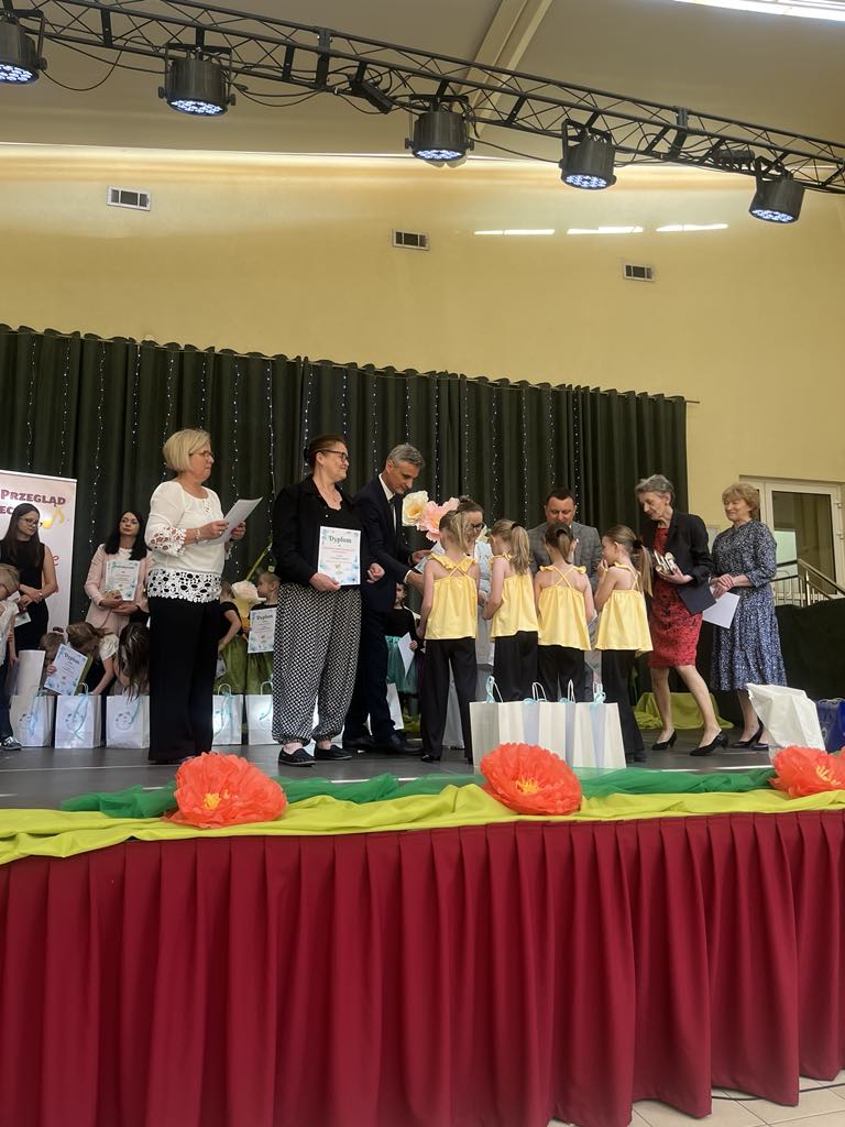 Za wspaniałe tańce i mile spędzony czas p. dyrektor Wiesław Pałka wraz z wicedyrektor p. Martą Szczepek, a także dostojni goście wręczyli wszystkim uczestnikom konkursu pamiątkowe dyplomy i nagrody. Dyplomy podziękowania oraz słodką niespodziankę otrzymali również opiekunowie dzieci oraz dyrektorzy przedszkoli z naszej gminy.