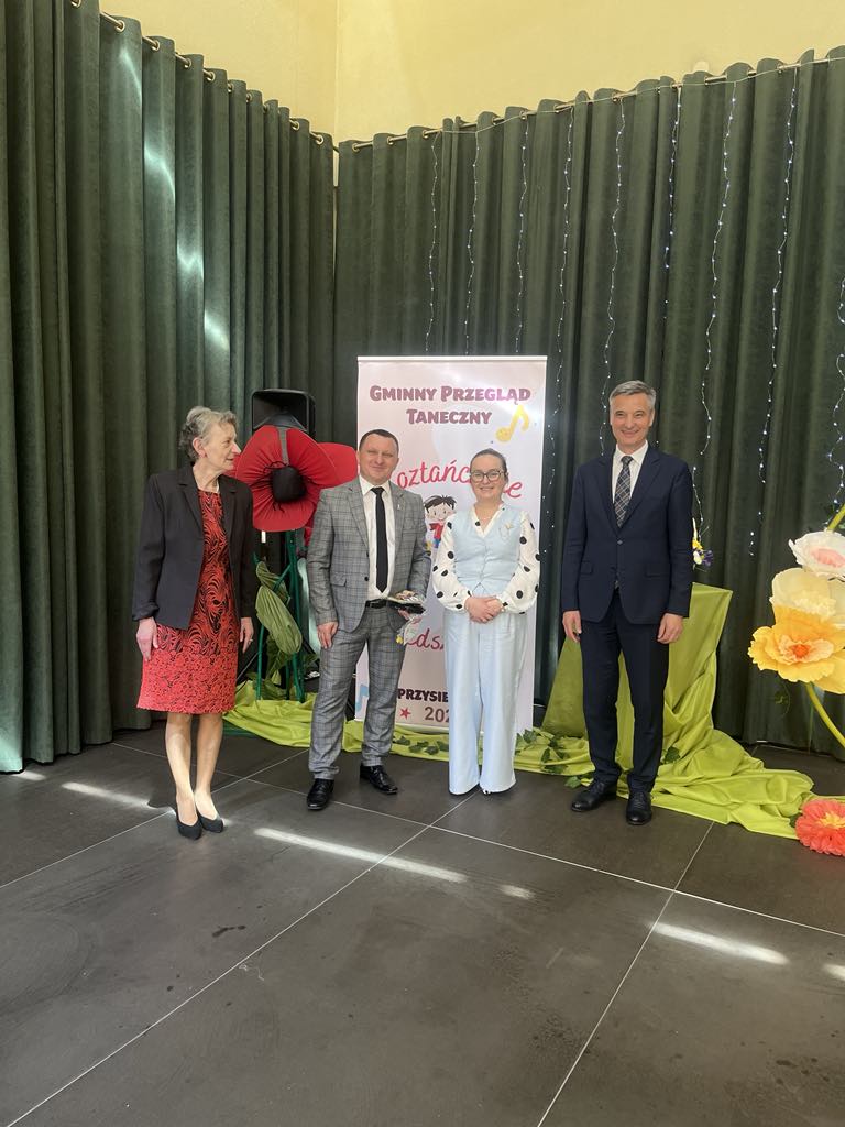 Na sam koniec przeglądu wystąpiły dzieci z naszego przedszkola. Sara Mazur, Vanesa Herbut, Julian Wania oraz Dominik Dereń w pięknych i ciekawych strojach zatańczyli walca wiedeńskiego a potem do utworu ABBY „Mamma Mia”. Dzieci trenowały pod okiem p. Agaty Szarek i Haliny Pantoł.