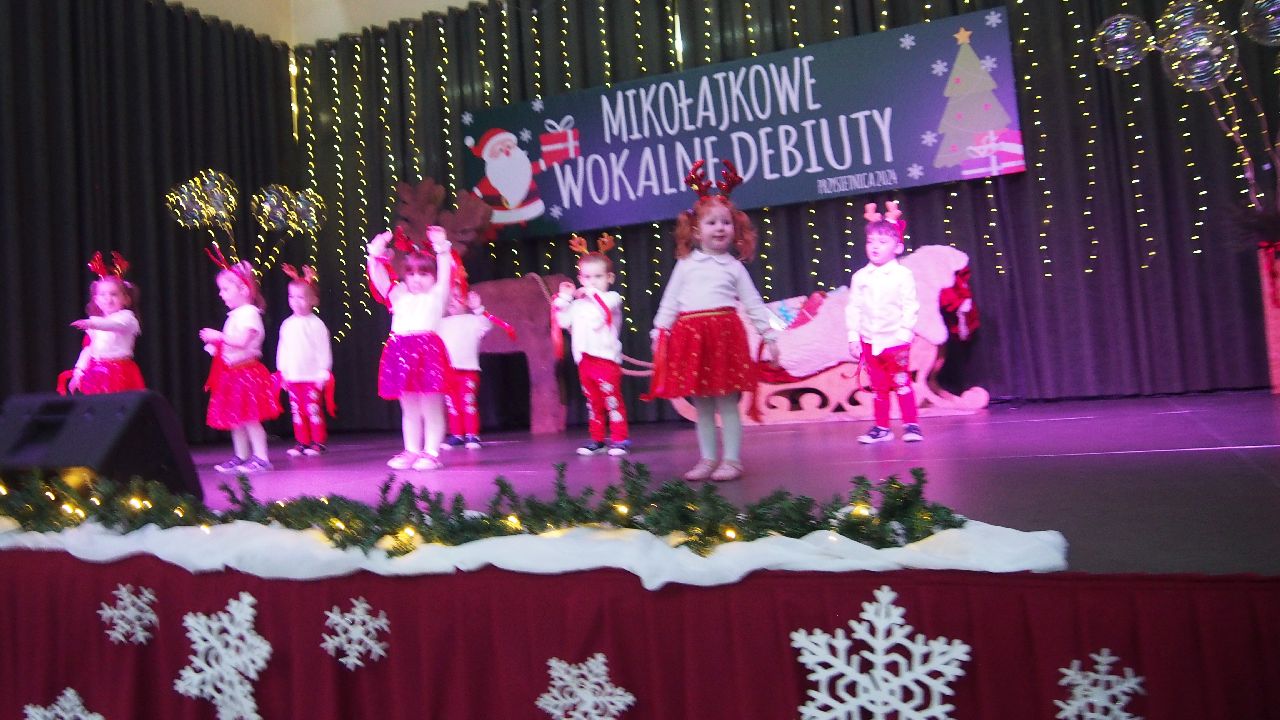 Pomiędzy występami solistów prezentowały się grupy przedszkolne w różnych układach tanecznych. Dzieci z grupy „Smerfy” zatańczyły do piosenki „7 reniferów”. Popularna była piosenka „Jingle Bells” i „Jingle Bells Rock”, do której różne choreografie taneczne pokazały „Pszczółki”, „Biedronki” i „Odkrywcy”. W nieco odmienne klimaty wprowadziły nas „Słoneczka” tańcem do piosenki „Ramię w ramię” oraz „Tropiciele”, którzy zatańczyli do słynnego przeboju Alvaro Soler - „Sofia”.