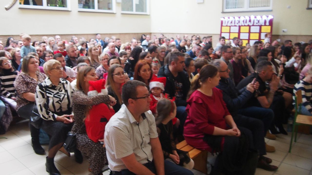 Zachwycona publiczność nie szczędziła młodym artystom braw. Występom uczniów przyglądał się też zacny gość - Święty Mikołaj, który lekko zdyszany zdążył na czas i podziwiał występy uczniów.