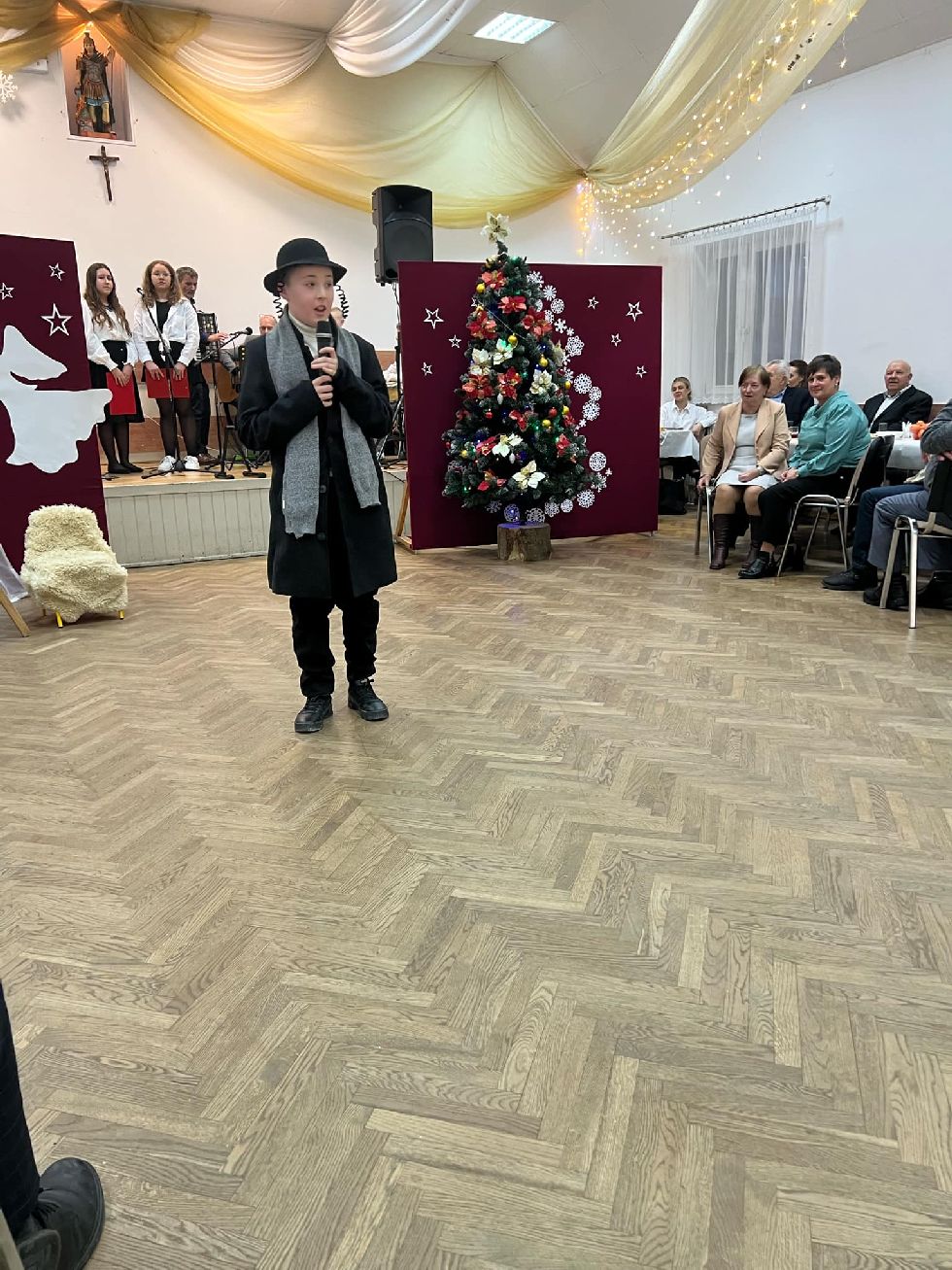 Uczniowie naszej szkoły pod kierunkiem pani Marty Szczepek wystąpili z programem bożonarodzeniowym, prezentując krótką scenkę związaną z tradycyjnym pochodem kolędników.