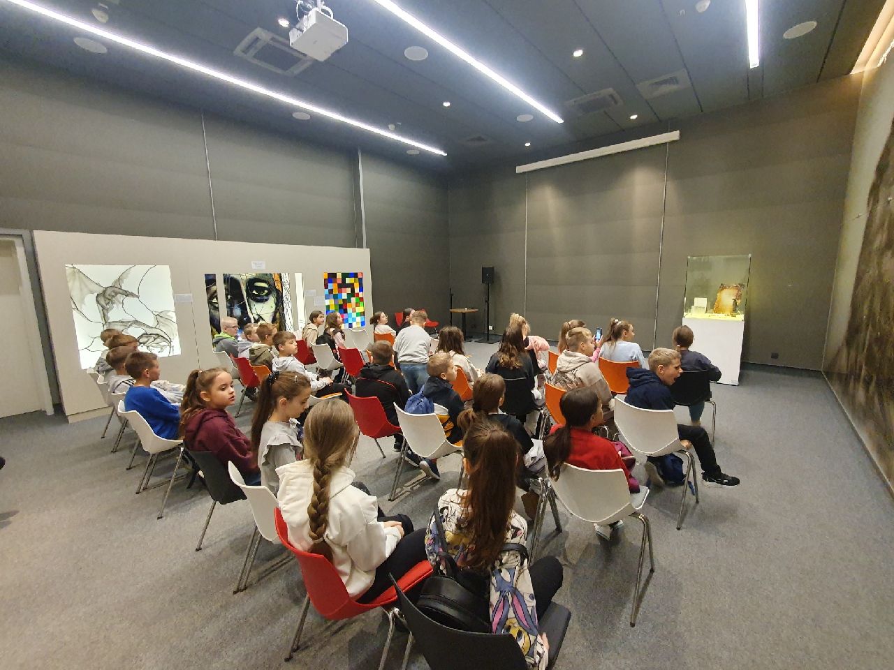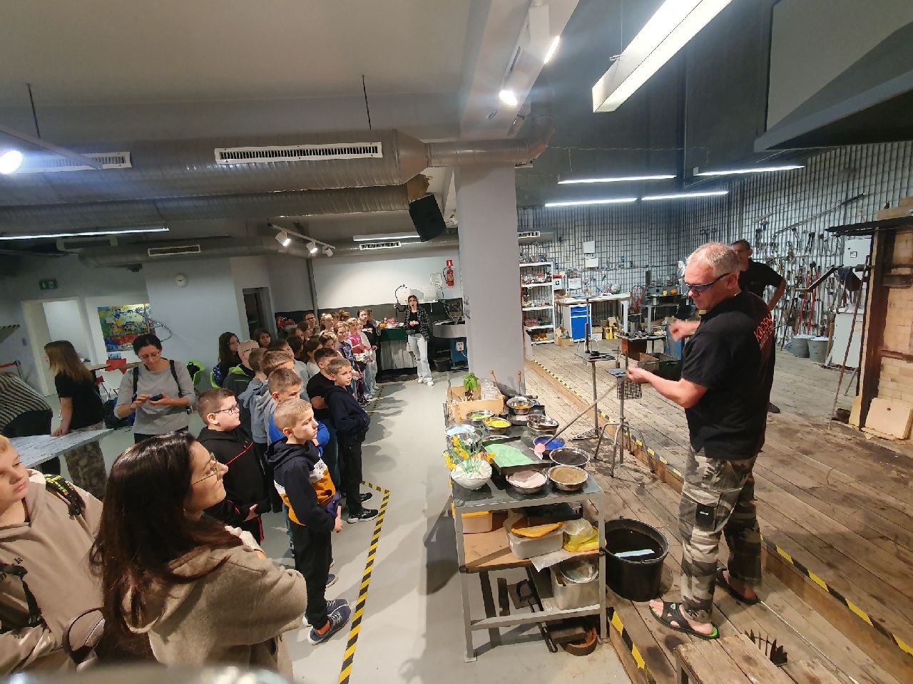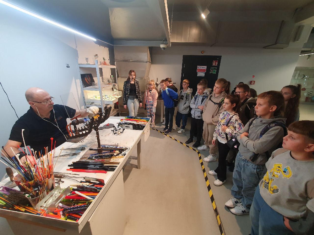 i artystów, którzy z rozgrzanego szkła tworzyli prawdziwe dzieła sztuki. Szczególnym zainteresowaniem cieszyły się pokazy dekorowania szklanych przedmiotów – malowania, piaskowania oraz grawerowania. Dzieci mogły również spróbować swoich sił podczas warsztatów artystycznych. Każdy uczestnik wykonał własnoręcznie obrazek na szkle oraz stworzył unikalną pieczęć ze szkła, którą zabrał ze sobą na pamiątkę. Była to doskonała okazja, by rozbudzić kreatywność i poczuć się jak prawdziwy artysta. Ciekawość uczniów wzbudził film, który prezentował historię powstania hut szkła w Krośnie i okolicach.