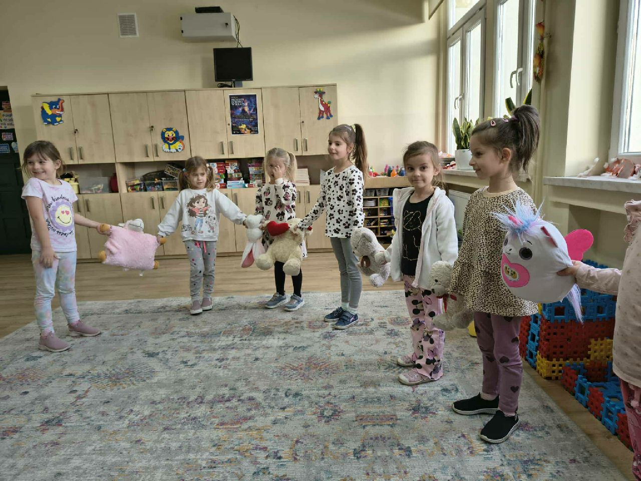 Nie zabrakło również quizów i zagadek, dzięki którym dzieci mogły sprawdzić swoją wiedzę o bajkowych niedźwiadkach oraz poznać ciekawostki o pluszakach. Zorganizowano również konkursy, w których przedszkolaki prezentowały swoje misie i opowiadały o nich krótkie historyjki. Dzieci świetnie się bawiły, a wspólne aktywności jeszcze bardziej integrowały grupy. Obchody Dnia Pluszowego Misia okazały się wspaniałą okazją do rozwijania kreatywności, umiejętności społecznych oraz wzmacniania więzi emocjonalnych z ulubionymi pluszakami.